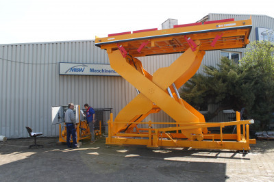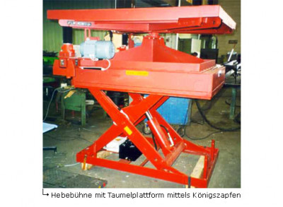 Hebebühne mit Taumelplattform mittels Königszapfen. |